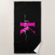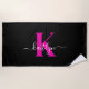 Elegant Black Hot Pink Script Monogram Beach Towel