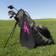 This simple, modern golf towel with your first name in a trendy script font in white and your first initial in a modern cap font in hot pink on black is perfect for you. It's stylish and trendy and yet very classic. It's unique - like you! Get a couple so you always have a clean one on hand.
