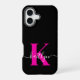 Elegant Black Hot Pink Script Monogram iPhone 16 Case