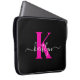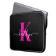 Elegant Black Hot Pink Script Monogram Laptop Sleeve