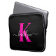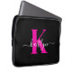 Elegant Black Hot Pink Script Monogram Laptop Sleeve
