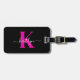 Elegant Black Hot Pink Script Monogram Luggage Tag