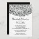 Beautiful elegant vintage antique lace bridal shower invitation featuring printed on lace in black lace set on a stylish modern white background. Flip the invitation over to find a matching coloured back for an extra special touch. Available in our shop in a large selection of modern & chic colour choices your bride will love. Easy to personalise with your party information and guaranteed to make a perfect first impression.