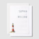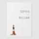 This elegant wedding invitation features a minimalist design with a black background, creating a striking contrast for the crisp white text and colourful lighthouse illustration. The layout is clean and sophisticated, with customisable placeholders for names, dates, and locations, ensuring personalisation while maintaining an overall formal tone. The lighthouse motif adds a touch of charm, symbolising guidance and celebration, perfect for a memorable event. With its modern typography and subtle colour palette of red and yellow accents, this invitation exudes a sense of elegance and simplicity, ideal for couples looking to make a stylish statement on their special day.