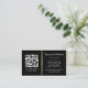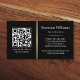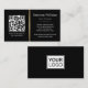 Modern, elegant, black business cards with custom logo and QR code templates. The text and QR code is separated by a printed golden colour gradient dividing line (not real foil). Fonts, font colours and background colours can be changed with the design tool.