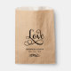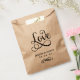 A romantic wedding favour bag featuring "Love" in flowing oversized black calligraphy script as the central design element, with the couple's monogram names and wedding date displayed below. All text is fully customisable. The bold calligraphy paired with delicate supporting type creates an elegant contrast, perfect for reception dessert tables, candy buffets, or sweet treat stations.