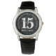 Recognise the invaluable contributions of employees with this commemorative 15 years of service wrist watch, which features elegant block lettering on a black marble background. Customise with message and years of service. Note: design is optimised for round face watches.