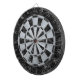 A classic dartboard design with alternating black marble and faux silver foil triangles.