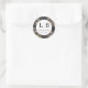 This elegant wedding sticker features a luxurious marbled background in dark gray and black with gold accents, creating a sophisticated and contemporary look. The design includes bold, capitalized initials "L" and "B" separated by a vertical line, set within a clean white circle that contrasts beautifully with the intricate backdrop. Below the initials, the phrase "THANK YOU" is elegantly displayed in a classic serif font, conveying gratitude with timeless style. Perfect for adding a personalized touch to wedding favors or gifts, this sticker combines modern minimalism with traditional elegance, making it an ideal choice for celebrating special moments.