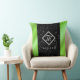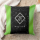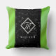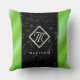 Elegant Black Marble & Lime Green Foil Monogram Cushion