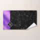 Elegant Black Marble & Purple Foil Monogram Bath Towel Set