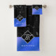 Elegant Black Marble & Royal Blue Foil Monogram Bath Towel Set