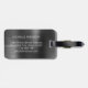 Girly Stylish Modern Elegant Monogram Initial Name Script Black Metal Custom Personalised Personalised Luggage Bag Tag. This design featuring a first name in a pretty hand lettered swash tail font calligraphy (or typography) with monogram initial, full name, address info on black faux mettalic foil background. These are easy to customise it. Stylish feminine gift for wedding, sweet 16 birthday, bridal shower, graduation, and for anyone who loves glamourous style.