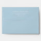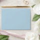 This wedding envelope features a minimalist design with a solid light blue background, creating a serene and elegant atmosphere. The centered text is presented in a clean serif font, emphasizing clarity and sophistication. With its simple layout and focus on typography, this envelope is perfect for couples seeking a refined and uncluttered look for their special day. Its formal style makes it ideal for weddings or other significant celebrations where elegance meets simplicity.