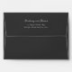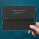 This wedding envelope features a sleek, modern design with a solid black background and crisp white text. The layout is simple yet elegant, showcasing the names in a stylish cursive font followed by an address in clean sans-serif typography. The minimalist aesthetic emphasizes clarity and sophistication, making it perfect for formal occasions. Its timeless color palette and uncluttered composition convey professionalism and refinement, ideal for weddings or other significant events.
