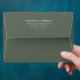This wedding envelope features a sleek, minimalist design with a solid dark green background and elegant white typography. The layout is centered and balanced, showcasing the names and address in a clean, modern serif font that exudes sophistication and formality. Perfect for an official announcement or invitation, this design emphasizes clarity and simplicity, making it ideal for conveying important details with a refined touch. Its understated elegance ensures it complements any wedding theme while maintaining a timeless appeal.