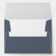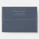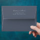 This wedding envelope features a sleek, minimalist design with a deep navy blue background. The layout is elegant and balanced, showcasing the names in a stylish cursive font at the top, followed by a clean serif font for the address. The typography is crisp and well-spaced, creating a sophisticated and formal appearance perfect for special occasions. Its simple yet refined aesthetic makes it ideal for those who appreciate understated elegance in their stationery.