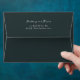 This wedding envelope features a sleek, minimalist design with a solid black background and elegant white text. The typography is refined, using a clean serif font that adds sophistication to the layout. Centered perfectly, the design emphasizes clarity and simplicity, making it ideal for formal invitations or communications. Its understated charm conveys professionalism while maintaining an inviting tone, suitable for any special occasion.