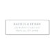 This self-inking stamp features a clean, minimalist design with centred text in a classic serif font, creating an elegant and formal appearance. The layout is vertically orientated with ample white space around the black text on a plain background, emphasizing clarity and readability. Perfect for official or ceremonial purposes, this stamp offers customisable placeholder text for names and addresses, making it ideal for personalisation. Its straightforward style conveys simplicity and sophistication, suitable for various professional or special occasion uses.