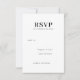This elegant wedding RSVP card features a minimalist design with a clean, modern aesthetic. The layout consists of a solid black panel on the left and centered text on the right, creating a balanced composition. The color palette is simple, using only black and white to emphasize clarity and sophistication. Customizable fields allow for personalization, while the use of serif and sans-serif fonts adds a touch of formality and readability. Perfect for formal occasions, this card conveys an air of professionalism and understated elegance.