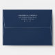 This wedding envelope features a sleek, minimalist design with a deep navy blue background and crisp white text. The layout is clean and modern, emphasizing clarity with evenly spaced lines of sans-serif typography that create an elegant and sophisticated look. Perfect for formal invitations or announcements, this design conveys a sense of timeless style and simplicity, making it ideal for couples seeking a refined aesthetic for their special day.