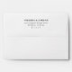 This wedding envelope features a minimalist design with a clean, white background and black text for a modern and elegant look. The layout is centered, showcasing bold serif typography for names and smaller sans-serif font for the address, creating a professional and formal appearance. With ample negative space, this design emphasizes clarity and simplicity, making it perfect for weddings or any formal occasion that calls for a sophisticated touch.