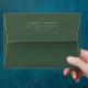 This wedding envelope features a minimalist design with a solid dark green background, creating an elegant and sophisticated look. The layout is centred, showcasing clean, sans-serif typography that emphasizes clarity and modernity. Customisable text allows for personalisation of names and addresses, making it perfect for a contemporary wedding celebration. The monochromatic colour palette enhances the timeless appeal, while the uncluttered composition conveys a sense of simplicity and formality. Ideal for couples seeking a chic and understated invitation suite.