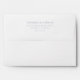 This wedding envelope features a minimalist and modern design with a clean, elegant layout centred on a solid background. The colour palette is simple, utilising deep black for the background and pure white for the text, ensuring high contrast and readability. The typography employs a classic serif font in medium weight, arranged vertically with ample spacing to enhance legibility and sophistication. Customisable placeholders allow personalisation for names, addresses, and locations, making it perfect for formal invitations or communications. The overall mood is one of refined elegance, ideal for celebrating significant life moments like weddings.