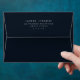 This wedding envelope features a sleek, minimalist design with centred text on a deep black background. The crisp white serif font adds elegance and sophistication, creating a striking contrast that emphasizes readability. With ample negative space around the text, this contemporary style conveys a sense of refinement and simplicity, perfect for formal invitations or announcements. The customisable placeholders allow for personalisation, making it ideal for any special occasion.