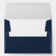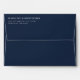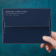 This wedding envelope features a minimalist design with a solid navy blue background and crisp white text, creating an elegant contrast. The layout is clean and simple, with the names and address centered for a balanced look. Utilizing a sophisticated serif font, this design exudes formality and timelessness, perfect for weddings or formal events. Its modern aesthetic emphasizes clarity and simplicity, making it ideal for those who appreciate understated elegance.