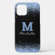 Elegant Black Monogram Light Blue Glitter Case-Mate iPhone Case