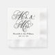 A timeless wedding napkin featuring "Mr. and Mrs." in ornate flourished black script on a crisp white background. The couple's names and date appear below in clean sans serif type, creating a classic monogram detail. Versatile enough for any wedding colour palette and perfect for reception tables, cocktail service, or farewell stations. All text is customisable.