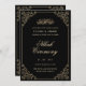 Luxury Islamic Muslim Nikah Wedding Invitation. Black colour card with a vintage style baroque corner design. There are two script fonts in gold colour on the front card. You can personalise all of the information related to the ceremony that is written on the card. Add text on the second card. Blank white envelope is included. Contact designer to add products in this collection.