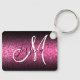Elegant Black Ombre Hot Pink Faux Glitter Monogram Key Ring
