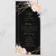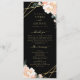 Here's the perfect program for your upcoming wedding. If you love black with gold and florals, here is your perfect match. This design features elegant peonies and rose buds in shades of blush peach and cream outlined in faux gold foil, together with a faux gold foil geometric shape encircling your wedding program details with a background of black on the front and back. All text is easily personalised using the template fields provided. Check out the collection for complementary wedding suite products. If you have a design question or would like to see this design on another product, please feel free to contact me at jschmidtdesignworks@gmail.com. Design © Judith Schmidt.