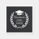 Featuring a classic black background and adorned with a replica school emblem, including graduation caps, white text, and a laurel wreath, these napkins exude tradition and prestige. Personalise them with your name and graduation year for a truly unique touch.