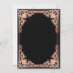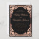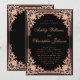 This elegant black and pink (wedding invitation with a vintage air has an ornate pink frame with elegant baroque (faux) rose gold decorations in the corners, on a black background. The names of the bride and groom are written in an elegant calligraphic script. All text can be personalised and has a pink colour similar to the frame.