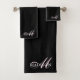 Elegant Black Pink Monogram Script Initial Name Bath Towel Set