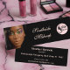 This elegant black mini business card is designed for makeup artists, salon professionals, and beauty entrepreneurs who want a sophisticated brand look. Featuring a stylish portrait design, graceful script font and classic soft pink typography this template blends modern elegance with professional clarity. The front showcases business name and logo alongside a customisable photo, while the reverse includes space for your name, position, address and contact details. Perfect for makeup artists, stylists or anyone in the beauty industry looking to create a memorable first impression.