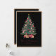Elegant Black Pink Watercolor Christmas Tree Holiday Card