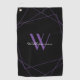 Elegant Black Purple Monogram Name Script Golf Towel