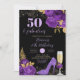 Elegant Black Purple Stiletto Heel Floral Birthday Invitation
