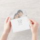 Elegant black and white all in one photo wedding invitation featuring refined calligraphy script with classic serif typography overlaid on your favourite photo. The couple's names are displayed prominently in black with event details below, and the lower panel includes a QR code for guests to RSVP and access your wedding website — no need to tear off and mail back a response card. The back features "Kindly Deliver To" calligraphy with individual guest addressing, and the couple's names and wedding date are displayed as a styled monogram. All text, colours, and layout are fully editable.