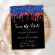 Elegant Black Red Blue Glitter Drips Save The Date Announcement Postcard