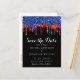 Invite your friends and family to celebrate your special day with these black, red and blue glitter drips save the date wedding invitation cards. Customise with your names, and all your wedding info. This USA American Flag themed wedding collection will be a favourite among all military, veterans, and armed forces. Visit our patriotic wedding collection for red white and blue wedding invitations, wedding favours, party supplies. COPYRIGHT © 2020 Judy Burrows, Black Dog Art - All Rights Reserved. Elegant Black Red Blue Glitter Drips Save The Date Announcement Postcard