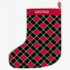 Elegant black and red lines diamond pattern with white lines stocking. Name is ready to be personalised.