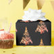 Elegant Black Red Orange Gift Wrapping Paper with Christmas Tree Pattern