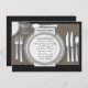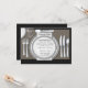 Pretty, elegant black damask table cloth and silver china place setting wedding rehearsal dinner invitation template. You can easily customise this elegant rehearsal dinner invitation with your event details in the font style, colour and wording of your choice.