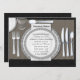 Pretty, elegant black damask table cloth and silver china place setting wedding rehearsal dinner invitation template. You can easily customise this elegant rehearsal dinner invitation with your event details in the font style, colour and wording of your choice.