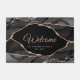 Add your own special touch to this simply elegant design featuring the words Welcome, your family name or phrase, and established date or home address in rose gold text with black, white and rose gold glitter agate over a black background.